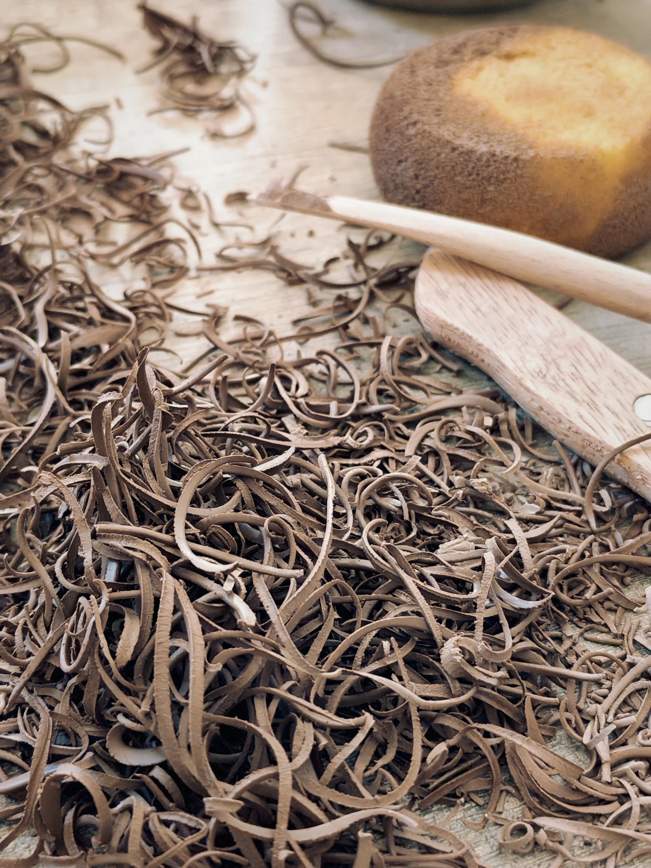 Mon travail est lent, précieux et minutieux : chacune de mes créations est entièrement réalisée à la main. Les collections fonctionnent sur un modèle de production raisonné, pour préserver la qualité de chaque pièce : la précommande.